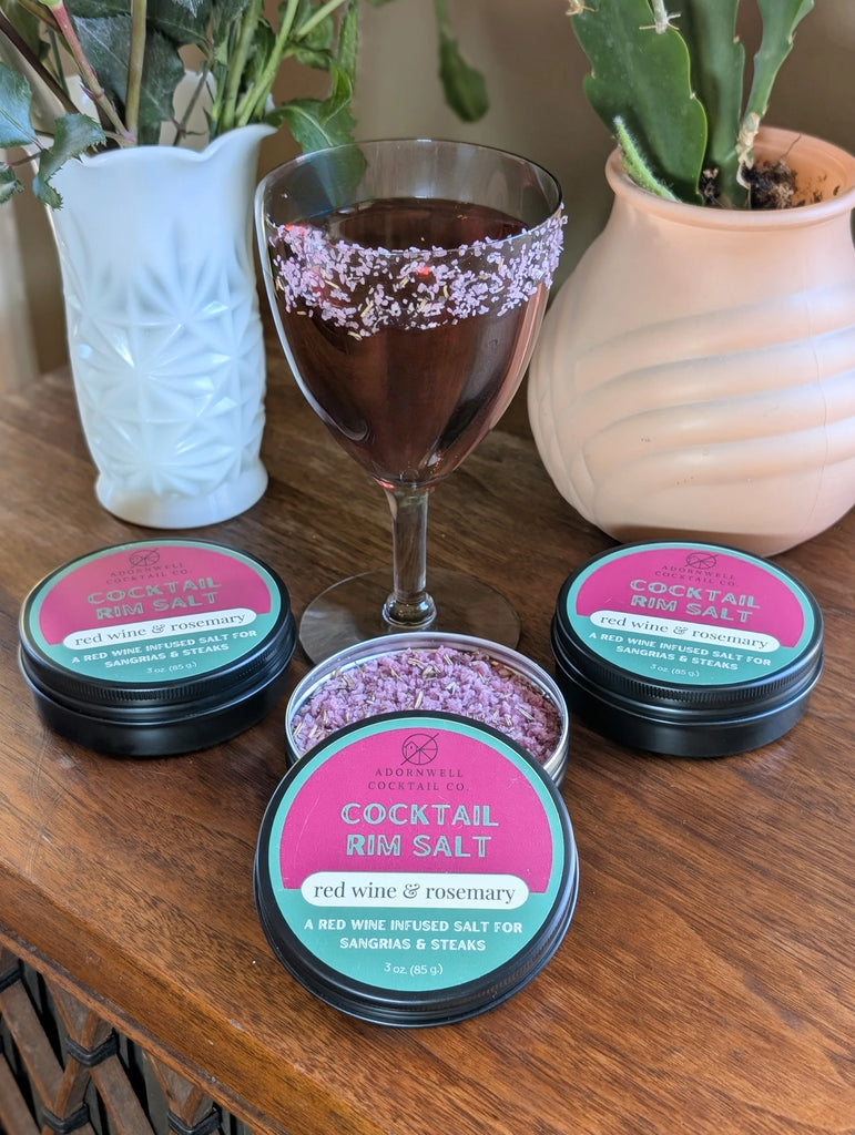 While this infused salt blend is a perfect finishing salt for grilled meats and vegetables, we found it pairs nicely with wine cocktails, too! Try this salt rim with a New York Sour, a Kalimotxo and sangria slushies! Rimmed on a bloody mary also gives a nice salty touch! Made with a red blend, kosher salt and rosemary, explore the possibilities of our delicious Red Wine & Rosemary Rim Salt.