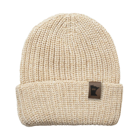 Knit hats made with 100% acrylic yarn.