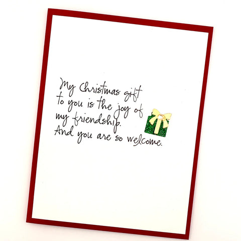 Each card is handmade with high quality acid-free cardstock using laser-printing, archival adhesive and embellishments. Cards are all blank inside and are shipped with a recycled envelope in a cellophane sleeve.